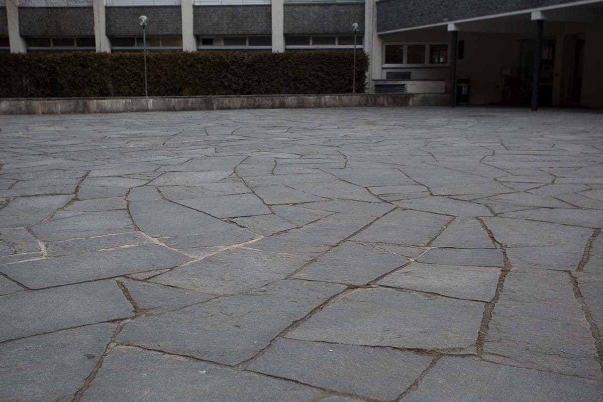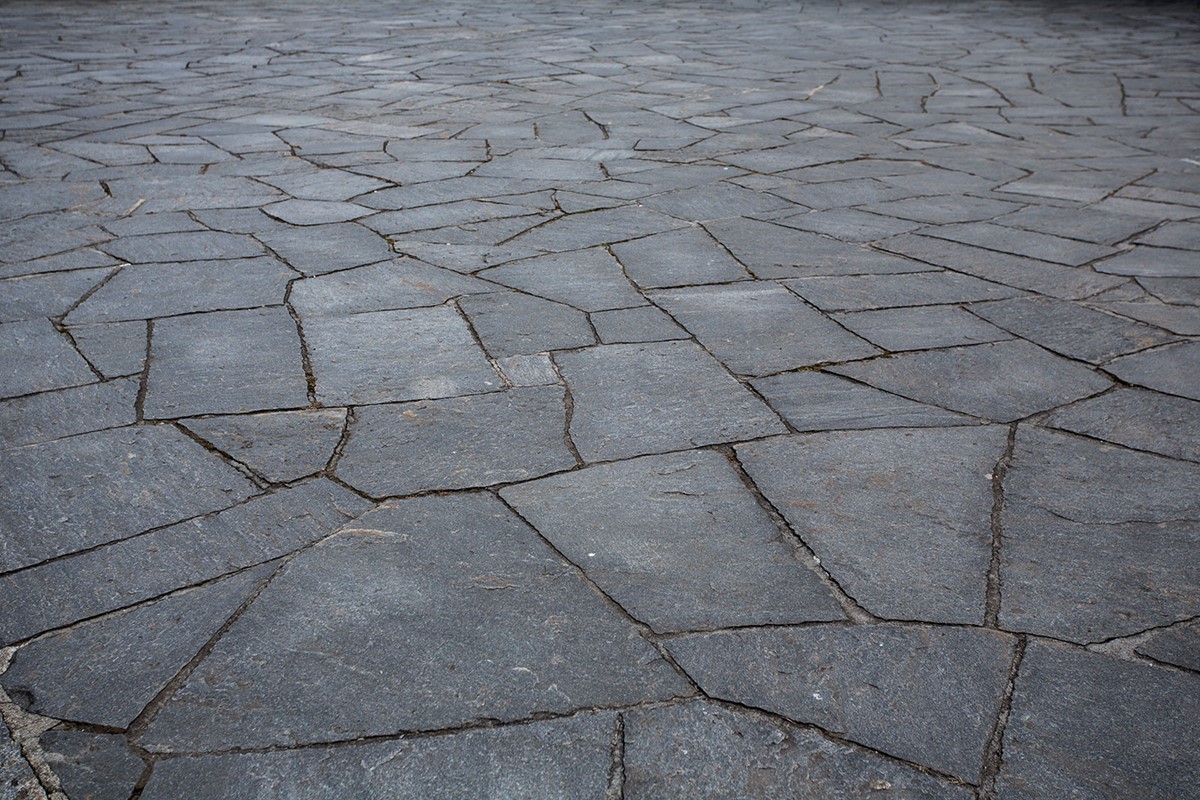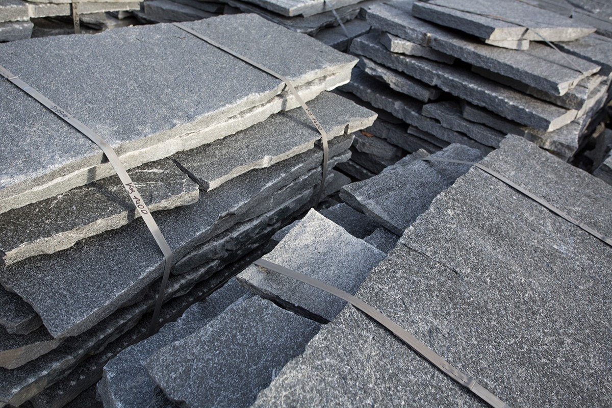 Platten entsprechend der natürlichen Spaltung des Steins (Gneis).